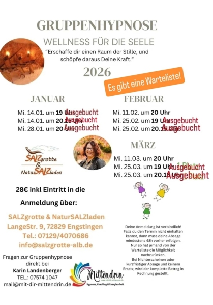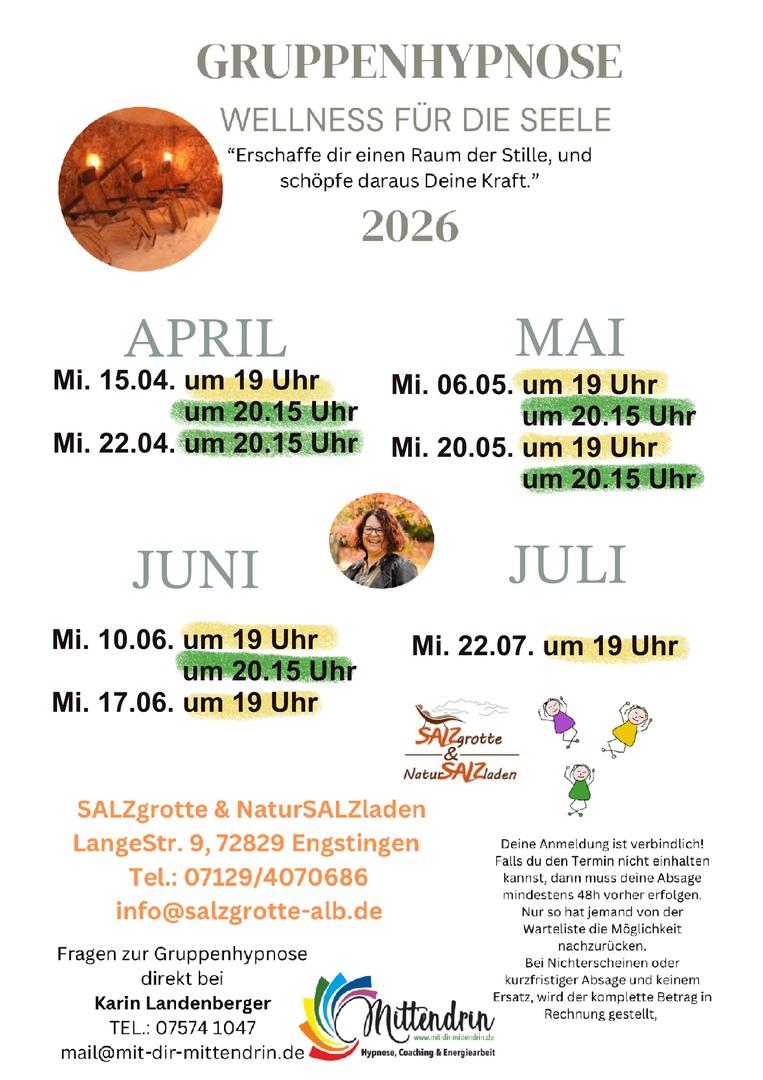 Anmeldung für die Gruppenhypnose in der Salzgrotte: